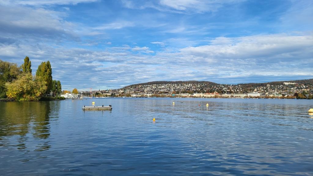 wir durchqueren Wollishofen und erreichen beim Fischers Fritz den Zürichsee Datum 14.12.2023