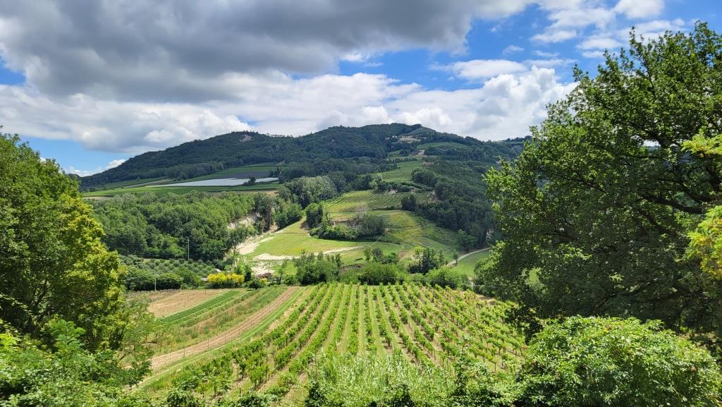 während dem Wandern bestaunen wir die Weitsicht in die Ebene der Emilia Romagna Datum 23.10.2024