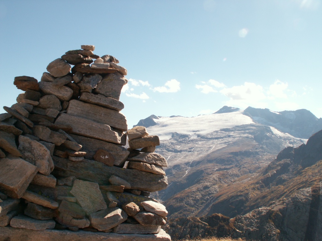Grosser Steinmändli im Hintergrund der Basodino Gletscher