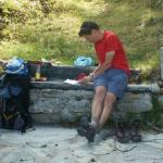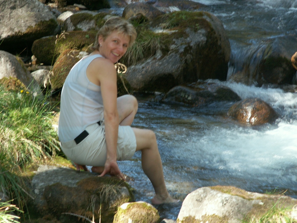 Mäusi hält den Fuss in der noch jungen Maggia