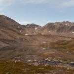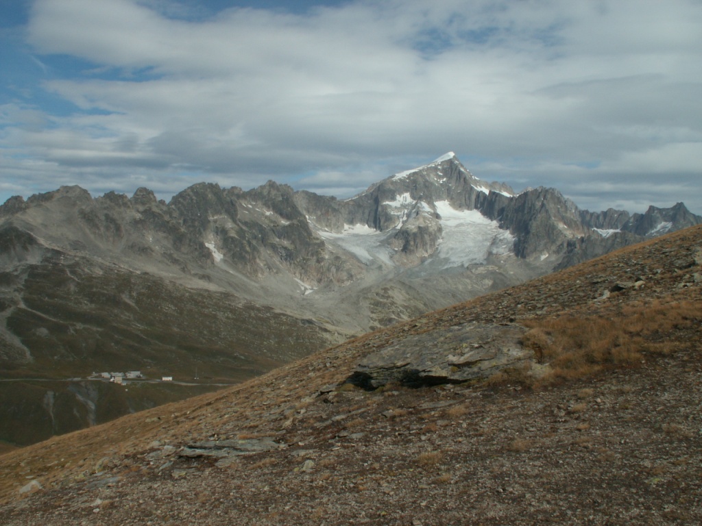 Links der Pizzo Lucendro in der mitte der Cavanna Pass mit dem Ronggergrat
