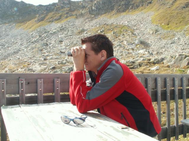 Franco schaut schon die Tour von Morgen mit dem Feldstecher