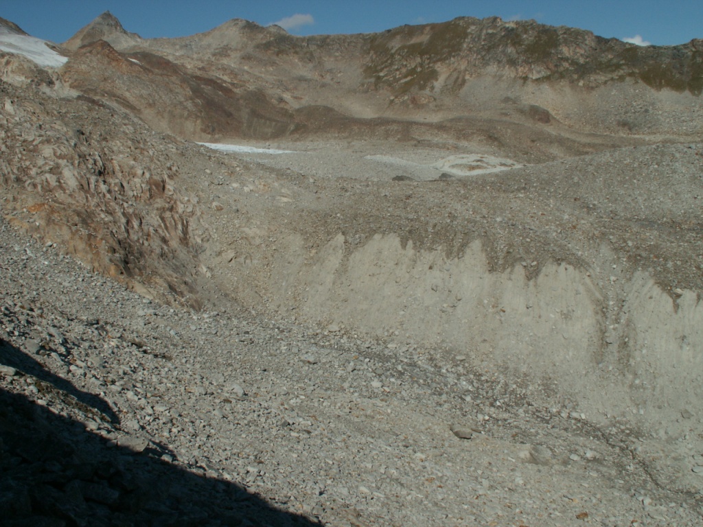 über Moränenhügeln des Muttengletscher