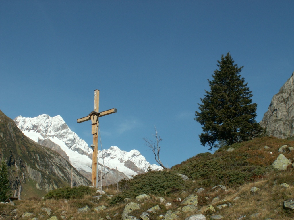 ein Kreuz im Hintergrund der Sustenhorn Datum 02.02.2007