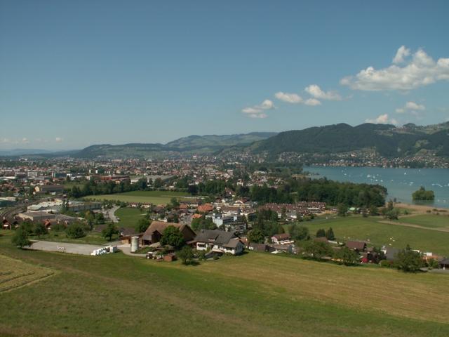 Breitbildfoto vom Uferweg mit Blick Richtung Gwatt