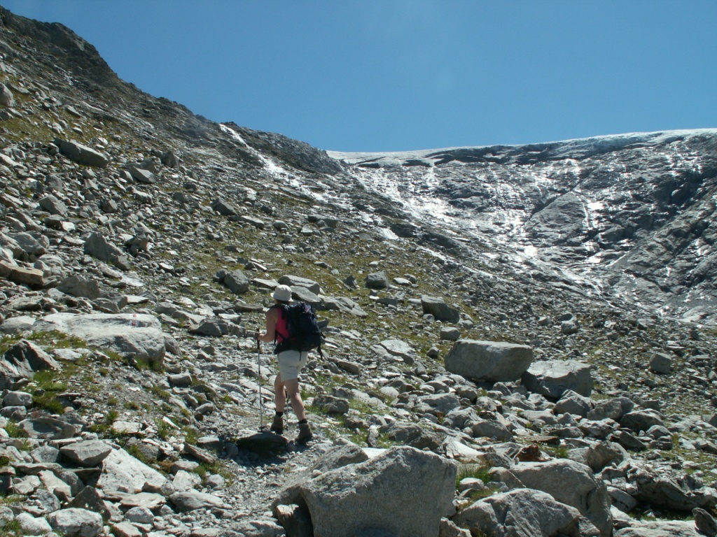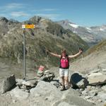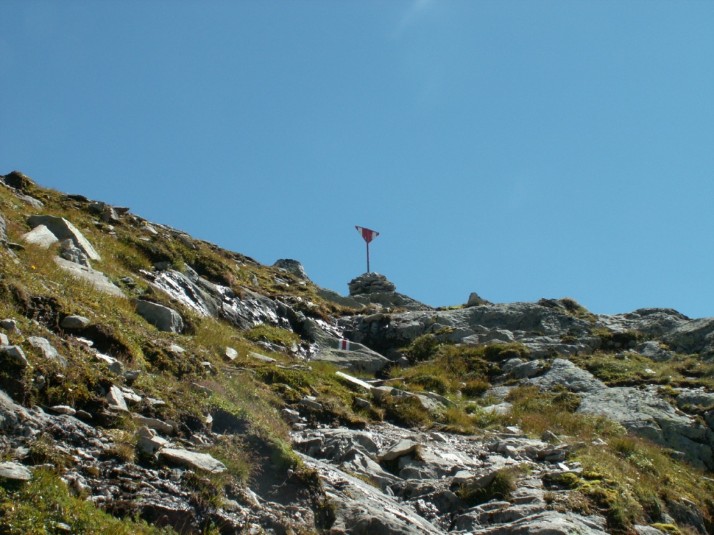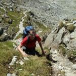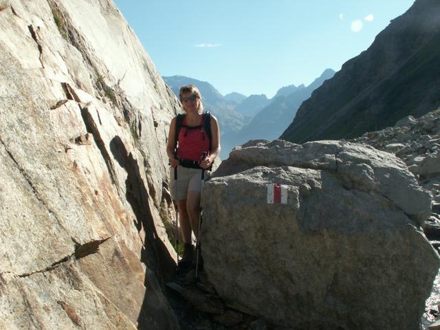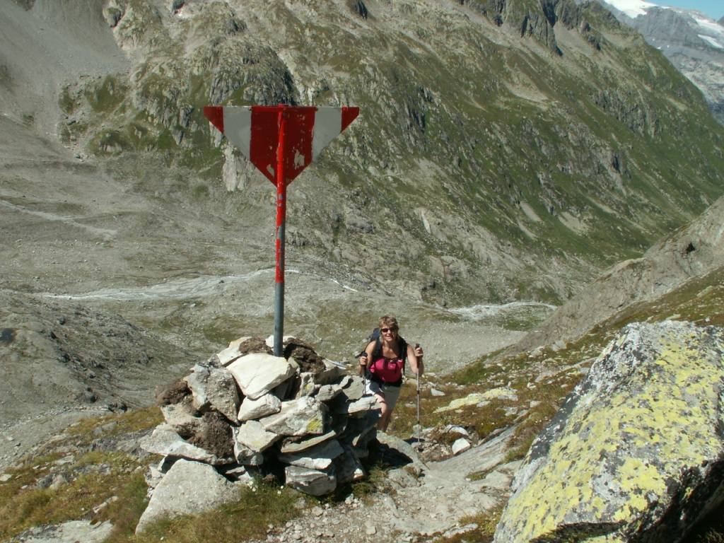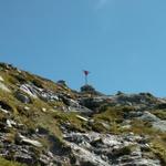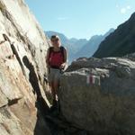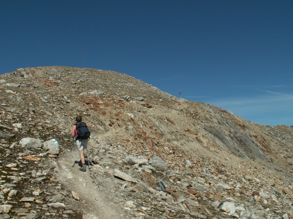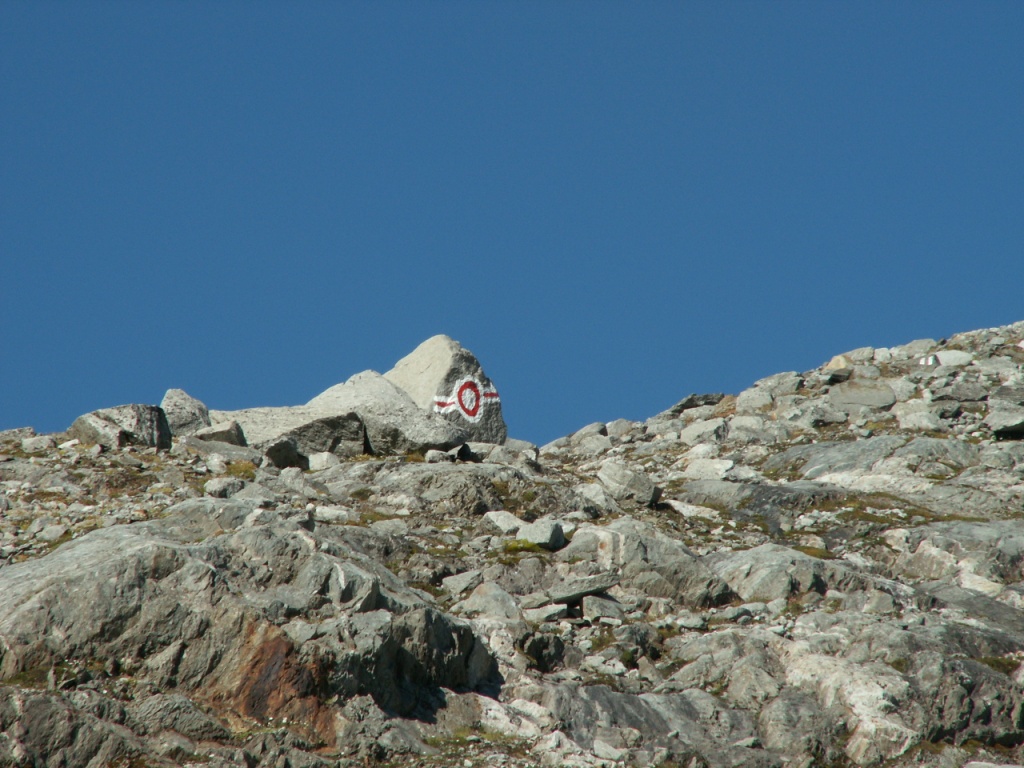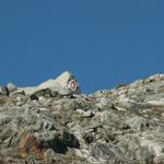 Mäusi erreicht die grosse Wegmarkierung auf 2485 m.ü.M.
