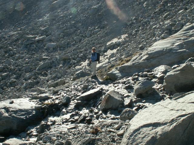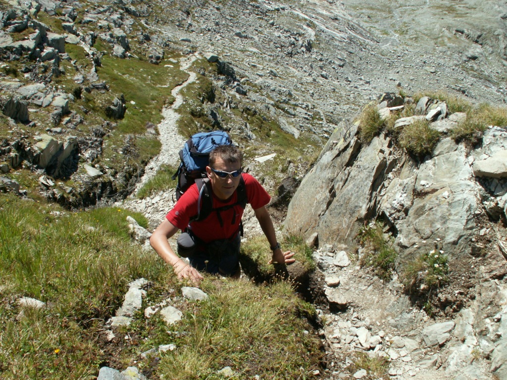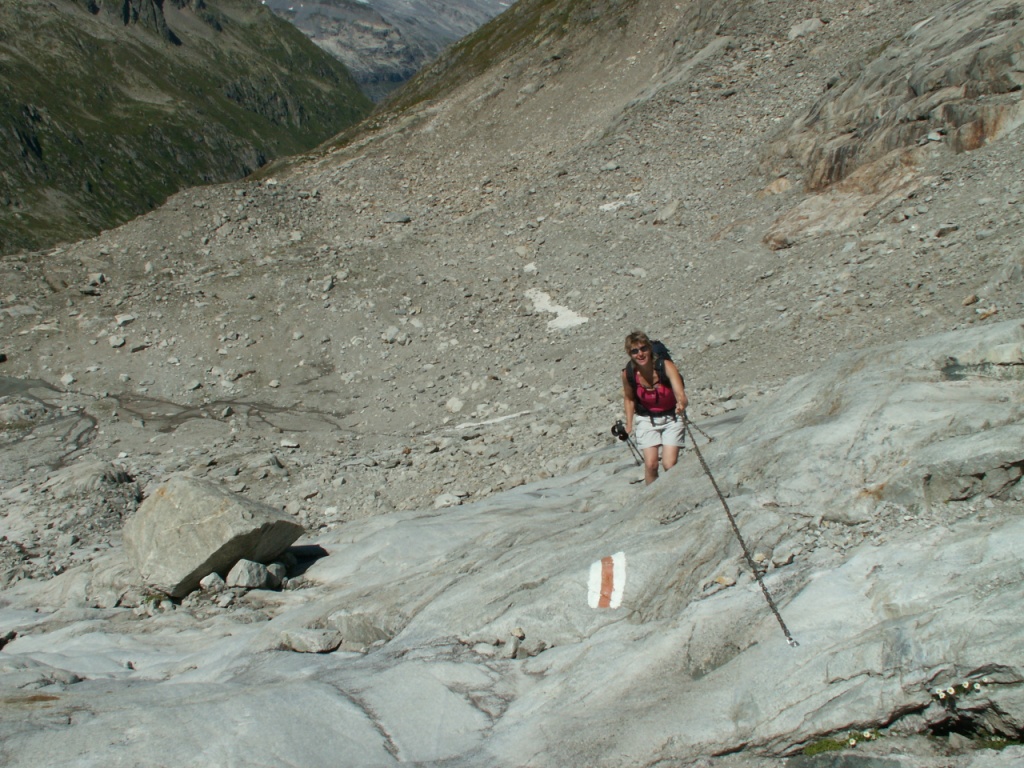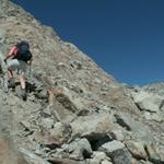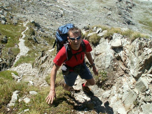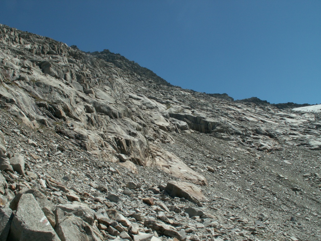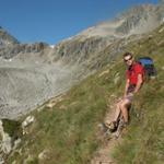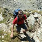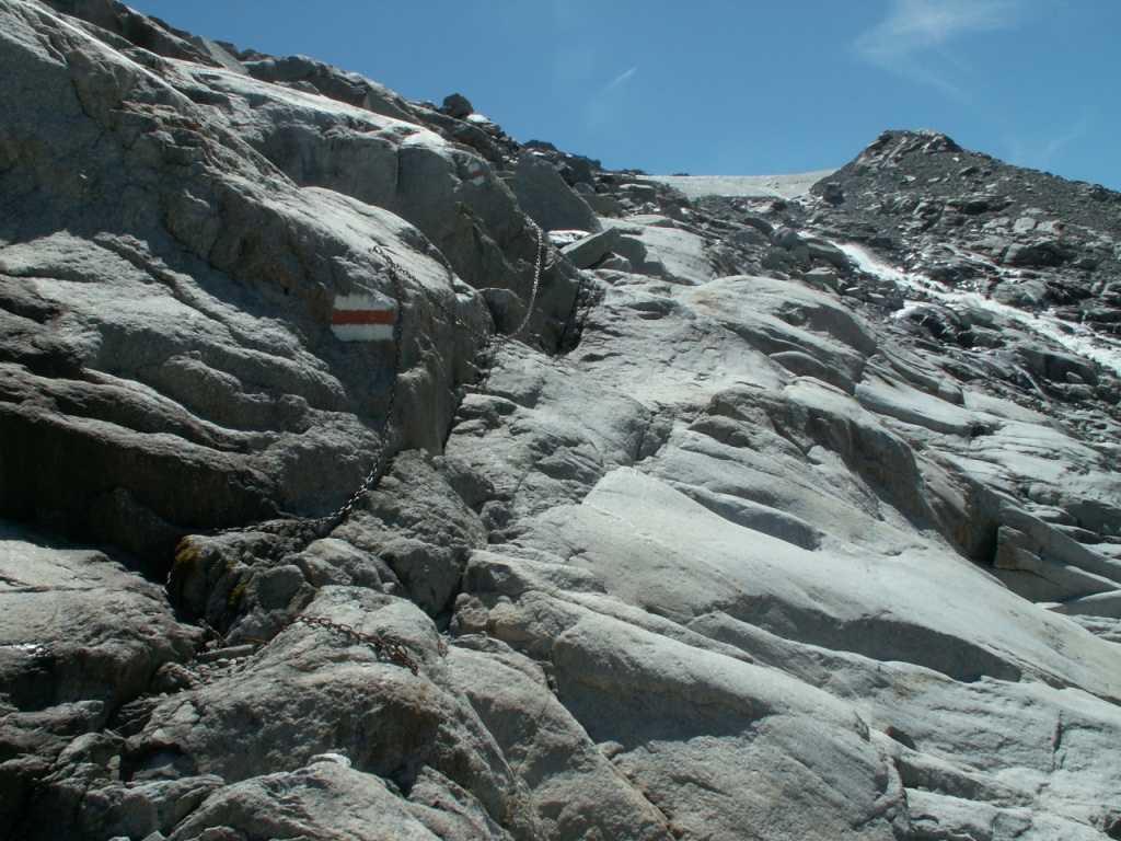 Mäusi erreicht die grosse Wegmarkierung auf 2485 m.ü.M.