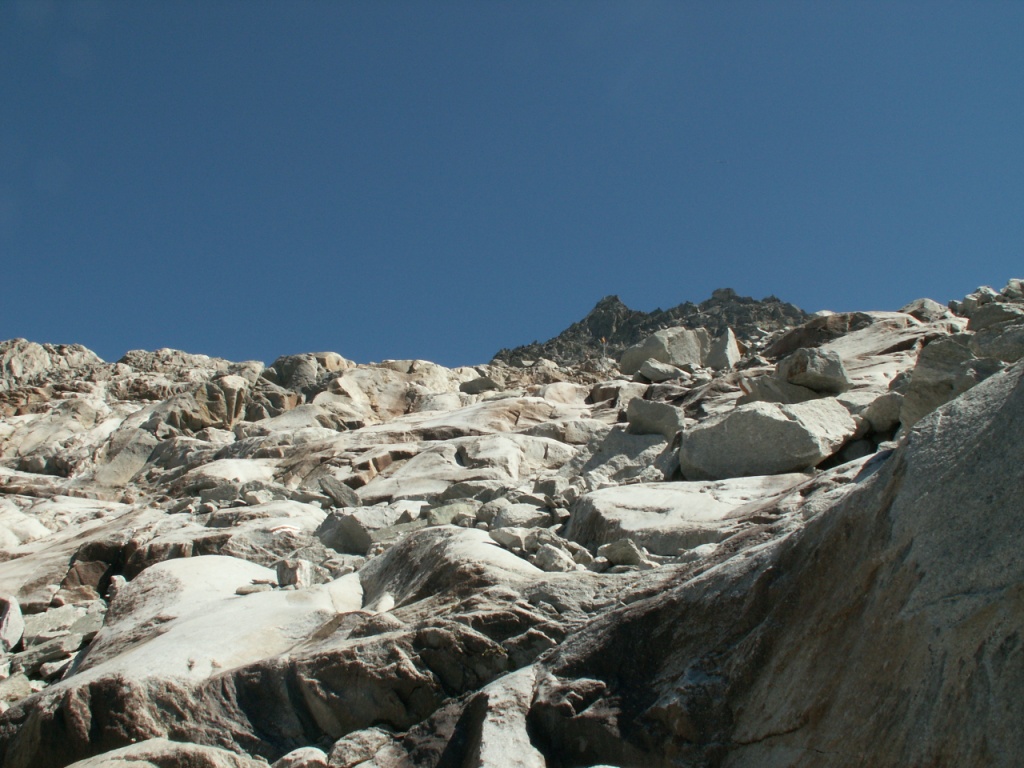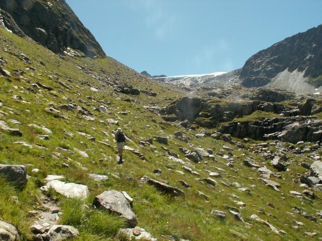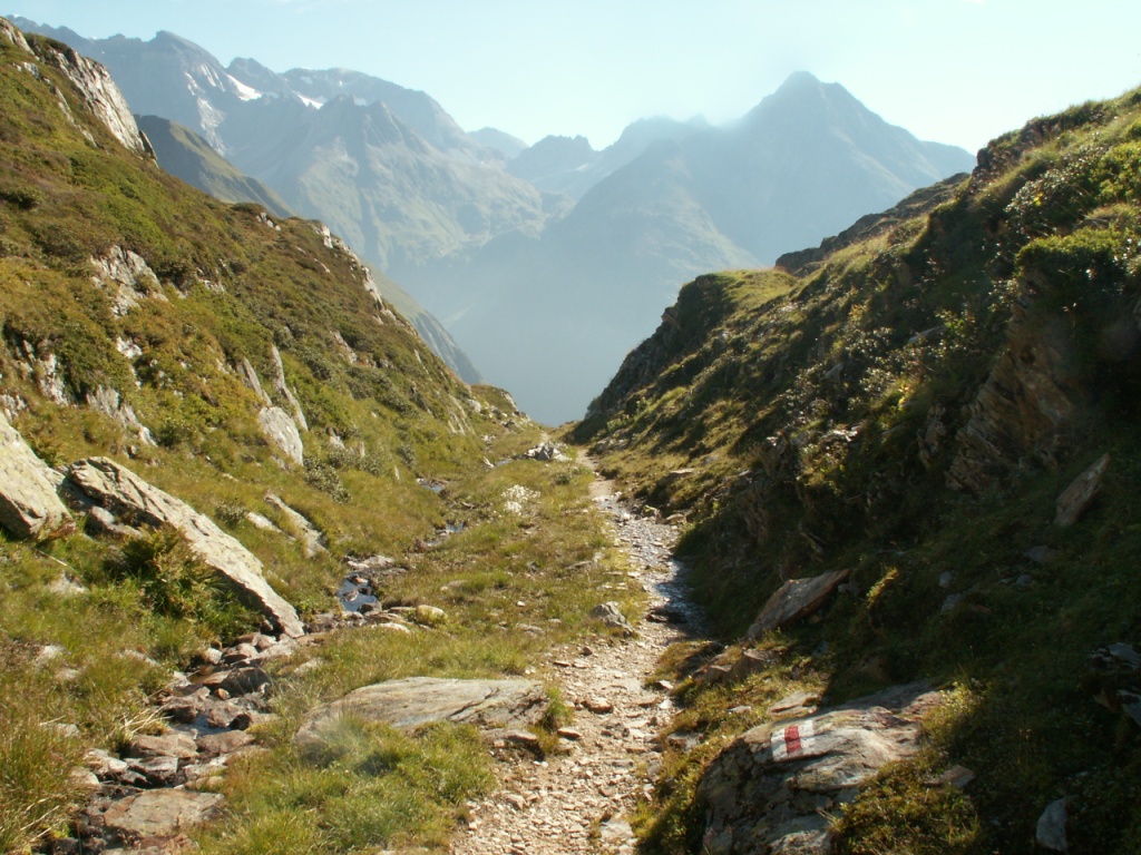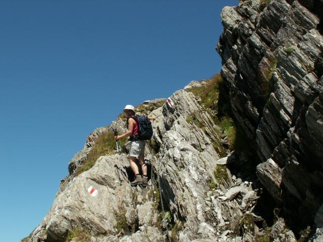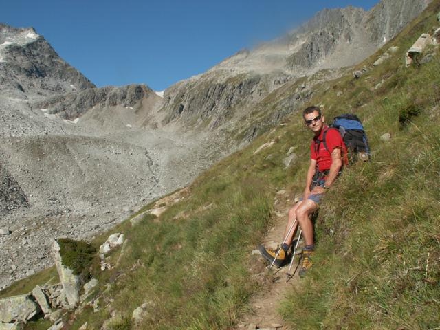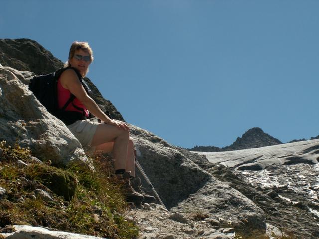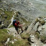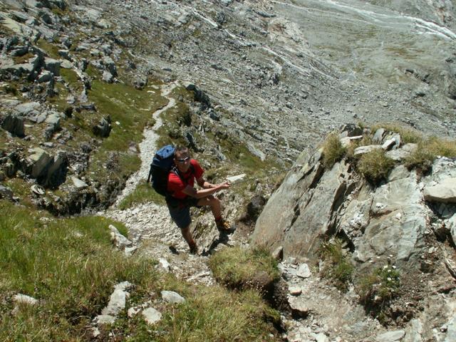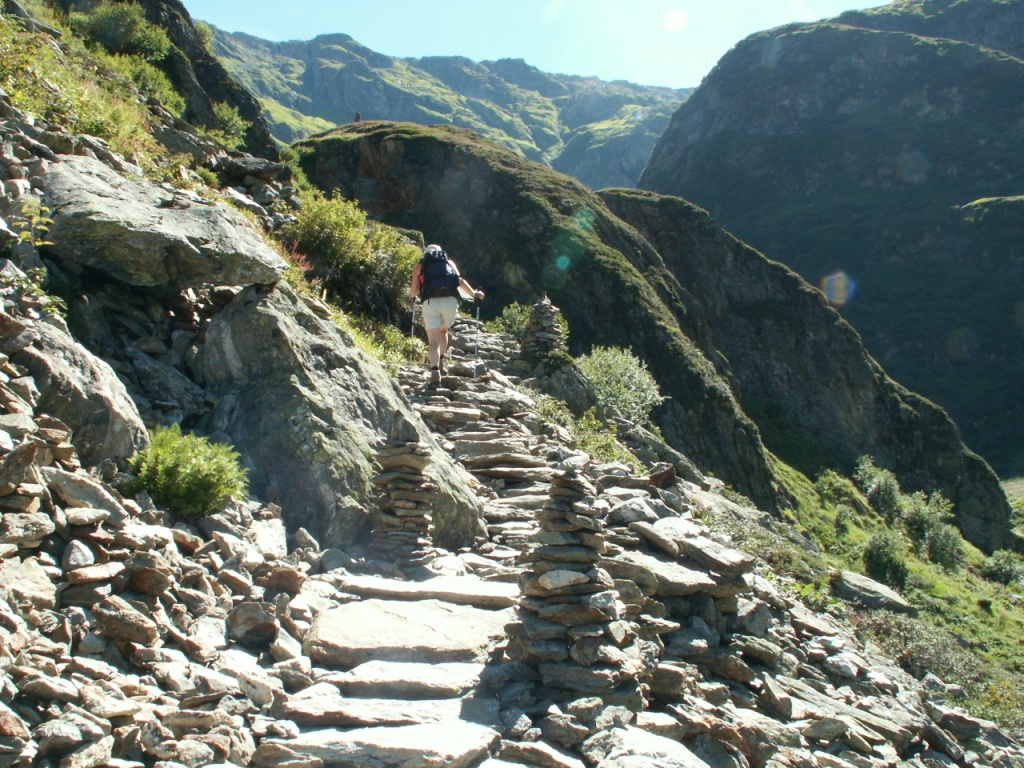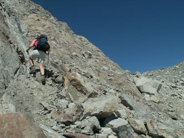 Mäusi erreicht die grosse Wegmarkierung auf 2485 m.ü.M.