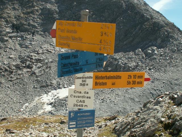 Wegweiser Brunnifirn 2606 m.ü.M.