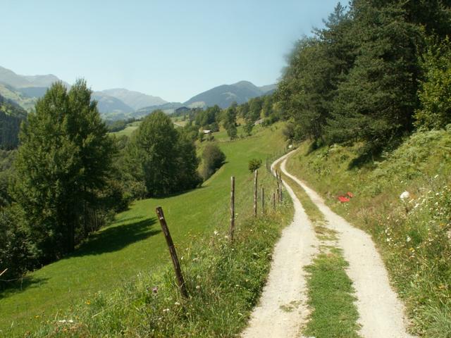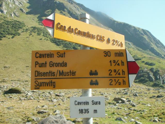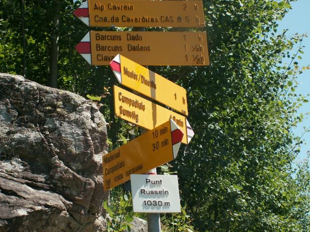 Wegweiser bei der Hauptstrasse Punt Russein 1030 m.ü.M.
