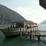 ein Schiff legt im Hafen von Gandria an