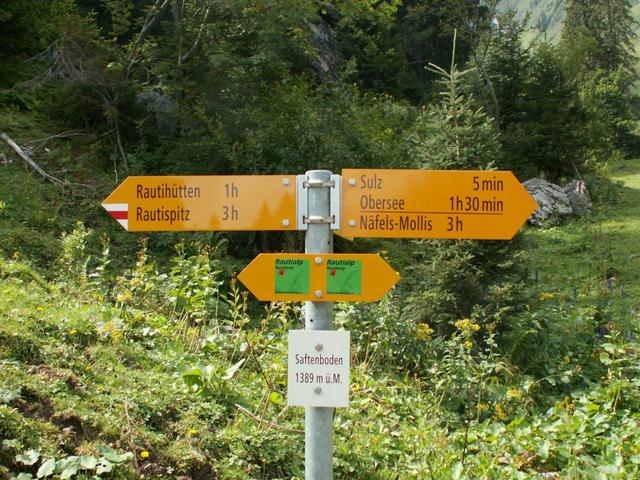 Wegweiser bei Saftenboden 1389 m.ü.M.