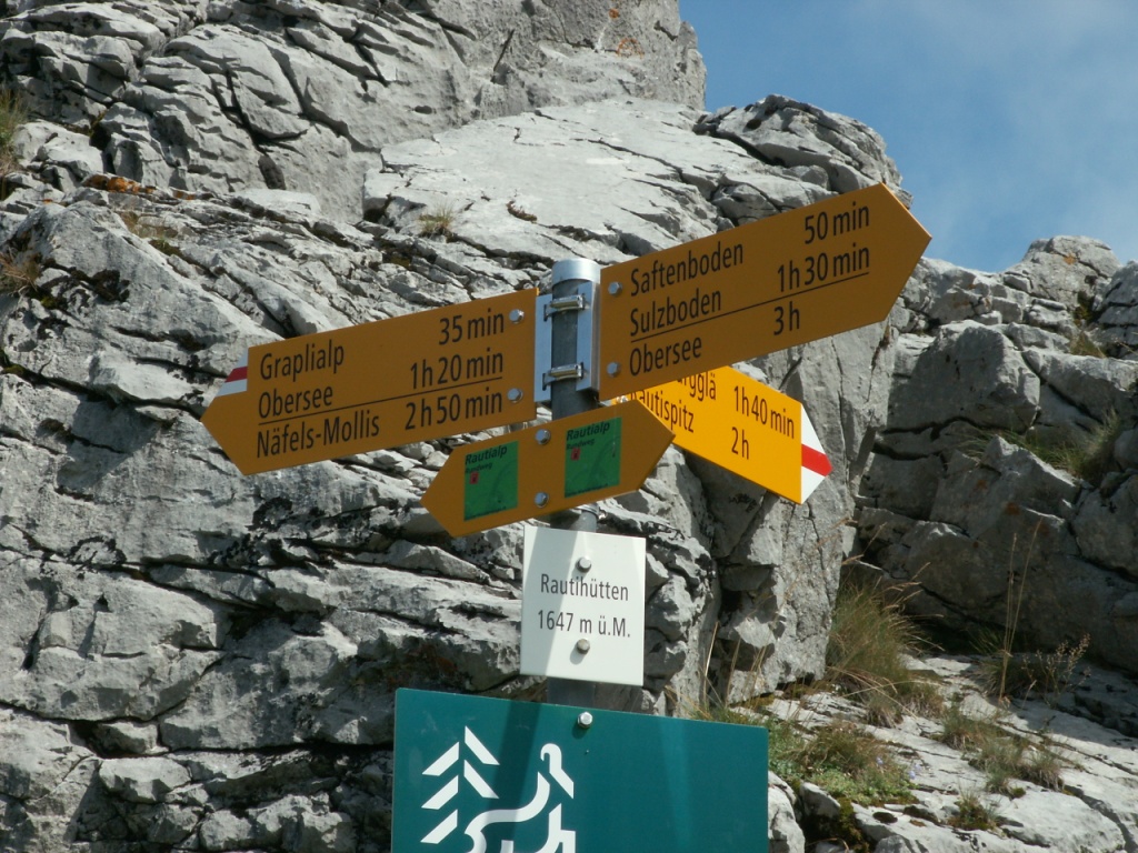 Wegweiser bei dem Rautihütten 1647 m.ü.M.