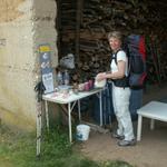 in einem Stall können Pilger einen Kaffee zu sich nehmen