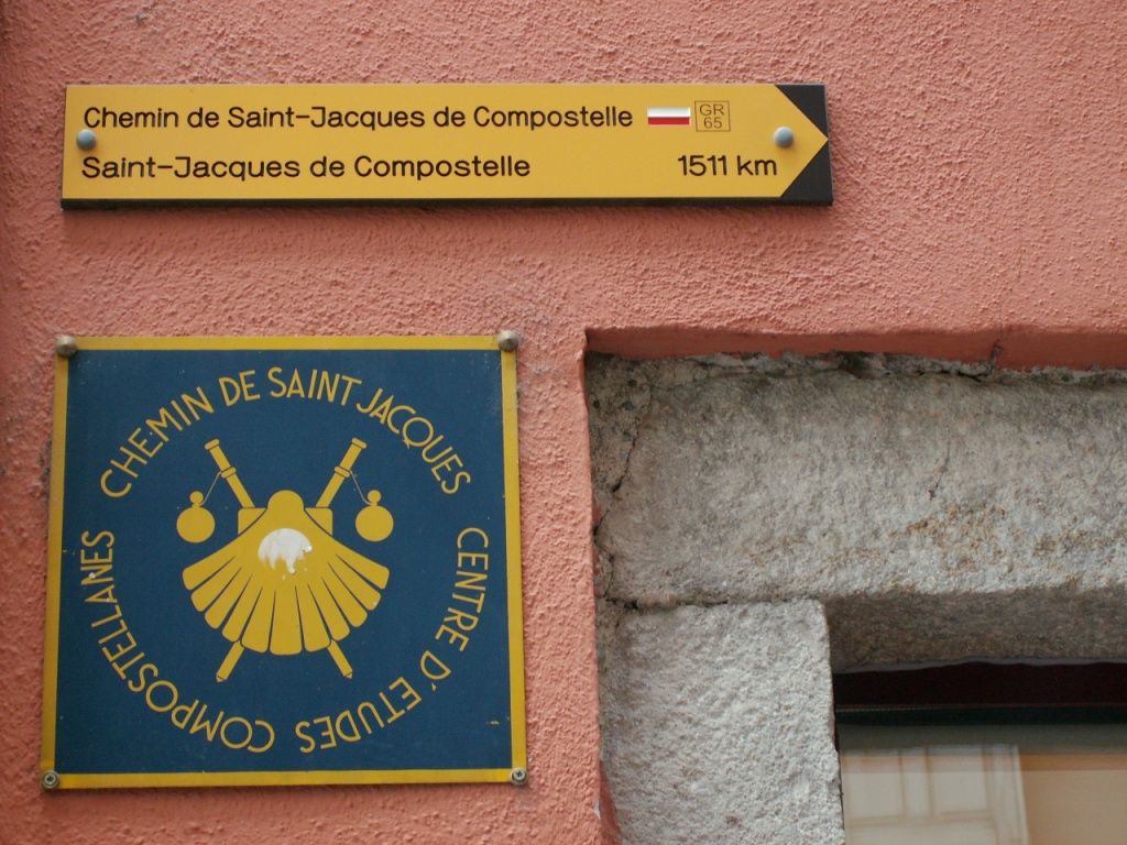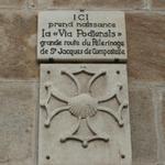 Hinweistafel, das hier die Via Podiensis beginnt
