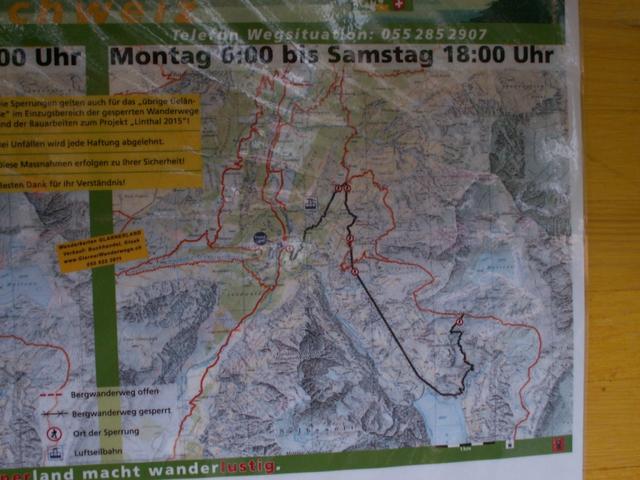 Hinweistafel Bauarbeiten Limmernstausee-Muttseehütte Datum 29.03.2010