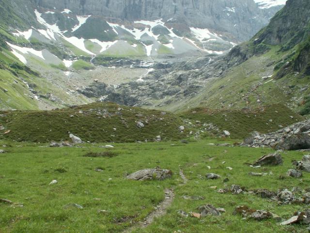 Blick zurück nach Ober Sand. Zuhinterst im Tal geht es zur Planurahütte Datum 22.07.2009