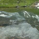die Berge spiegeln sich im kleinen Bergsee neben der Fridolinshütte Datum 21.07.2009