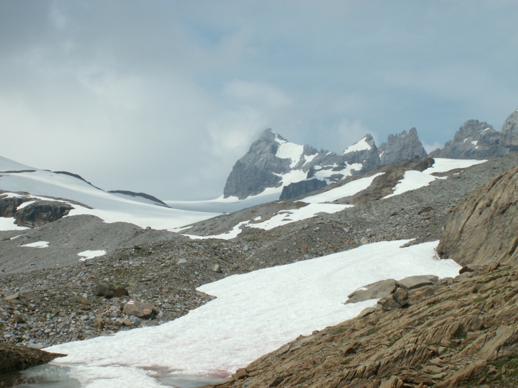 Blick zurück zum wolkenverhangenem Tödi Datum 22.07.2009