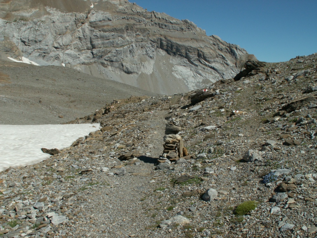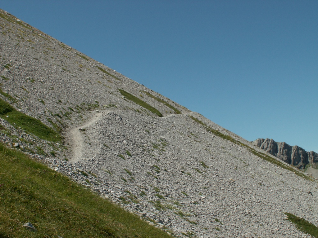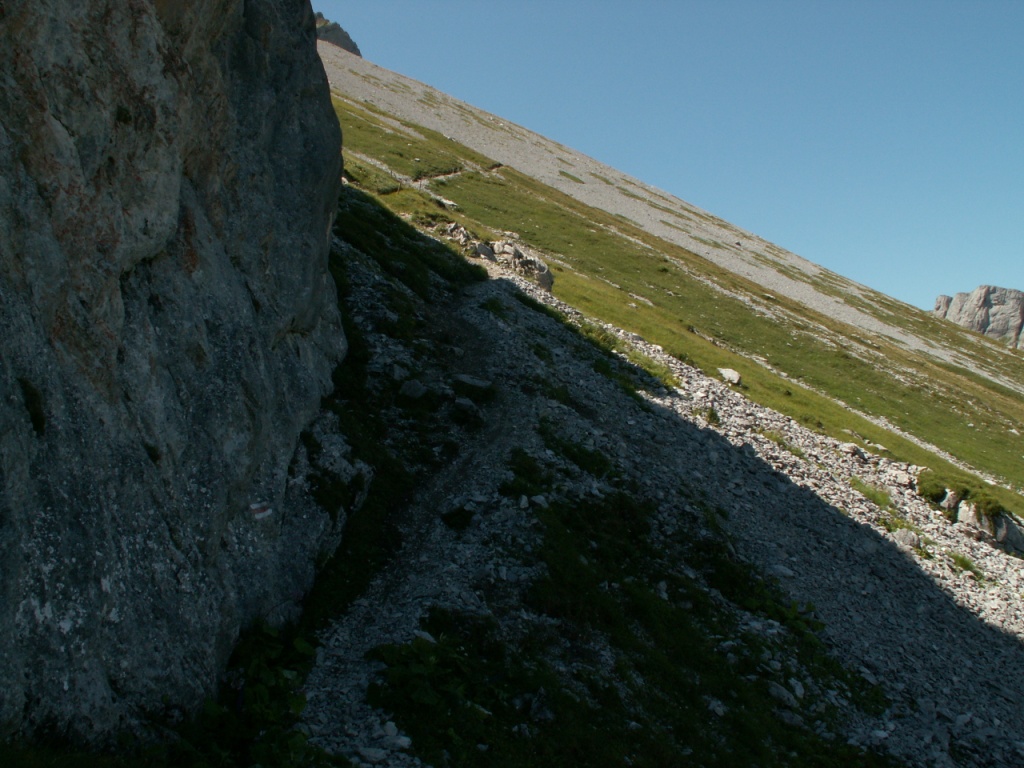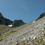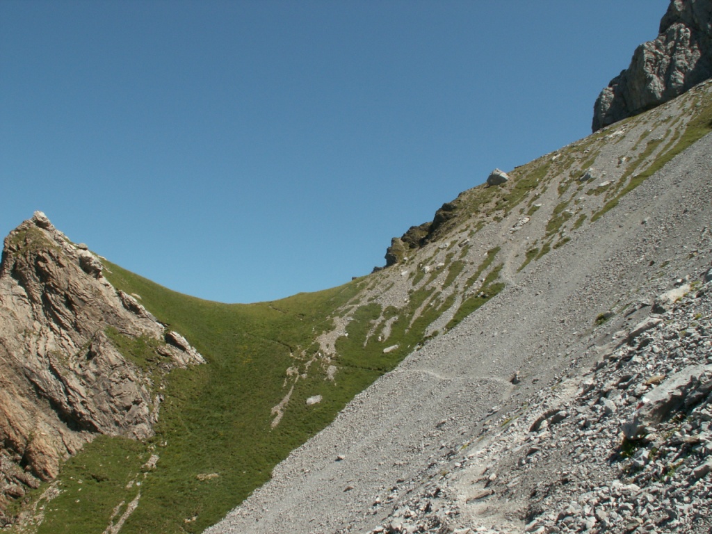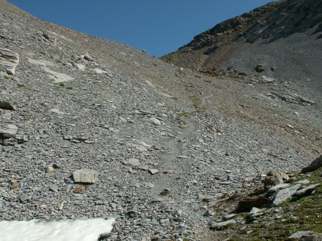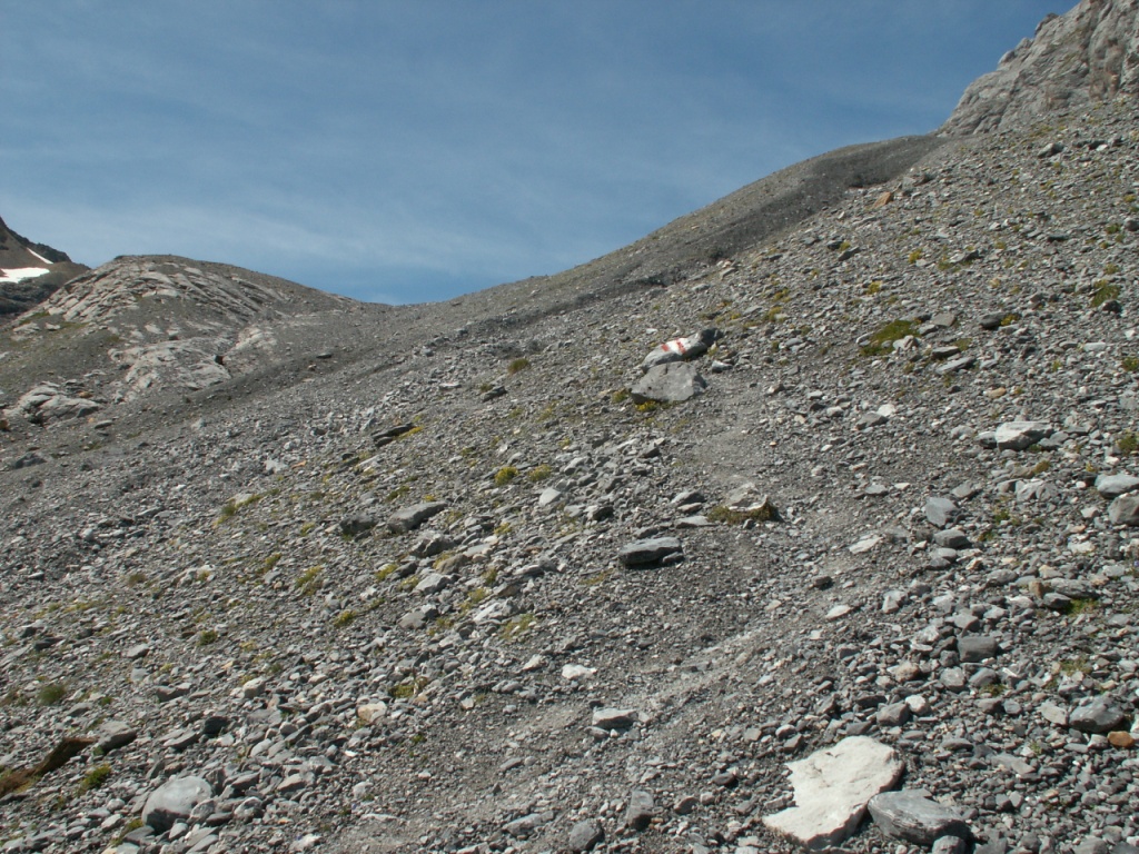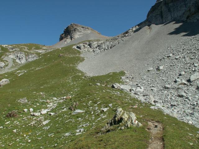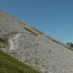 links neben dem Geröll geht es weiter aufwärts