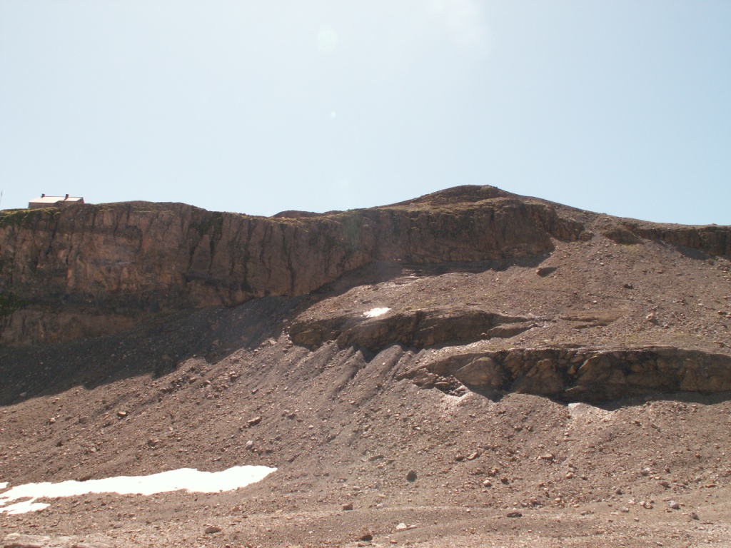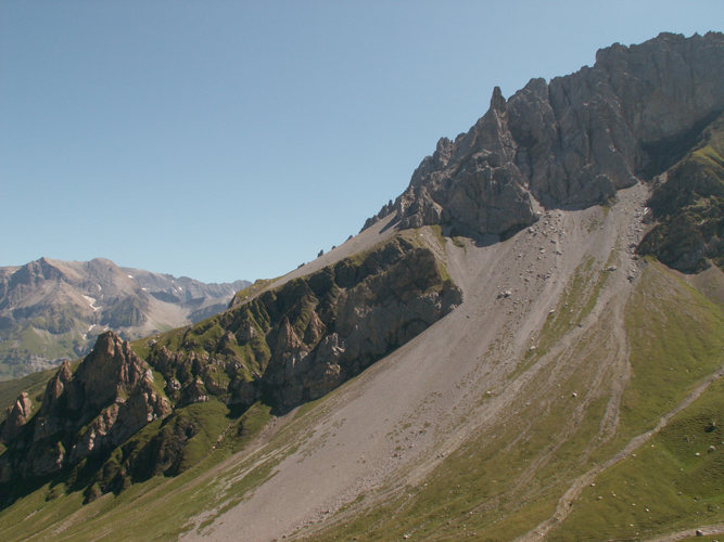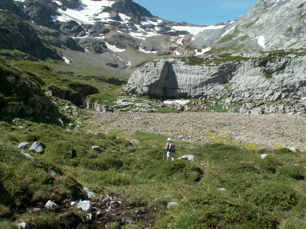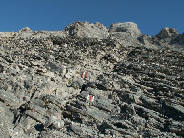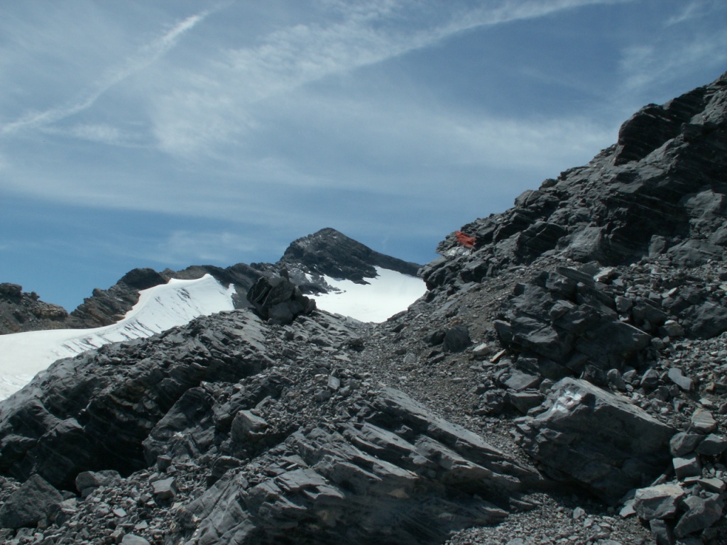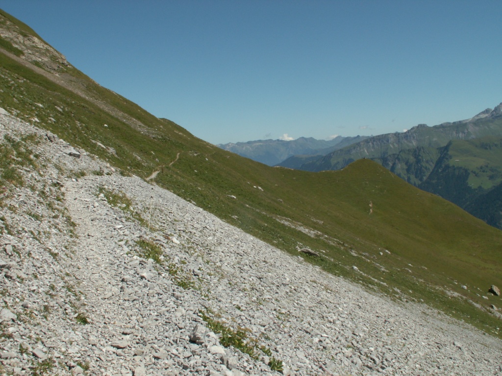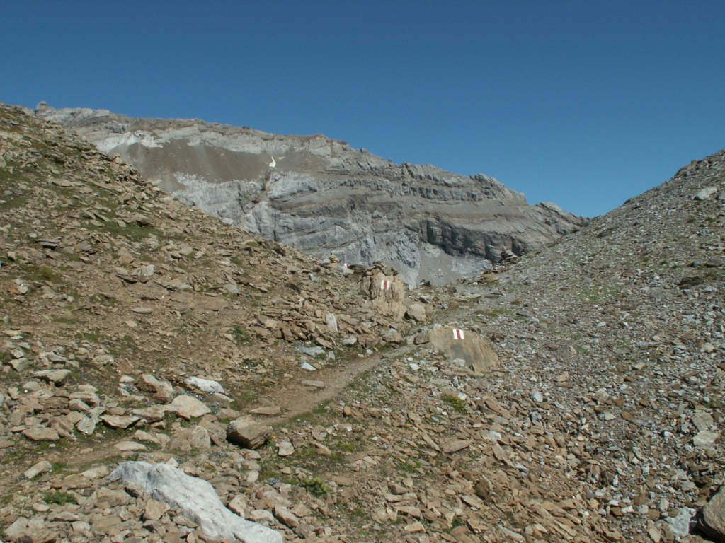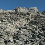 links neben dem Geröll geht es weiter aufwärts