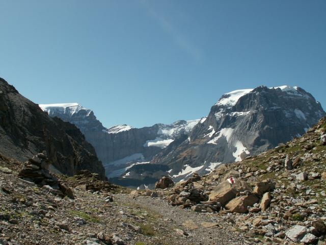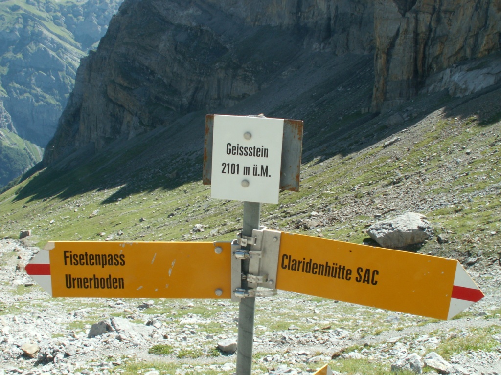 wir haben die Wegkreuzung bei Geissstein 2101 m.ü.M. erreicht