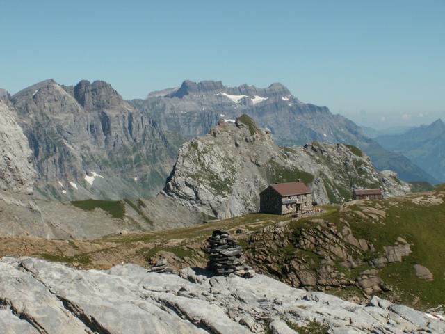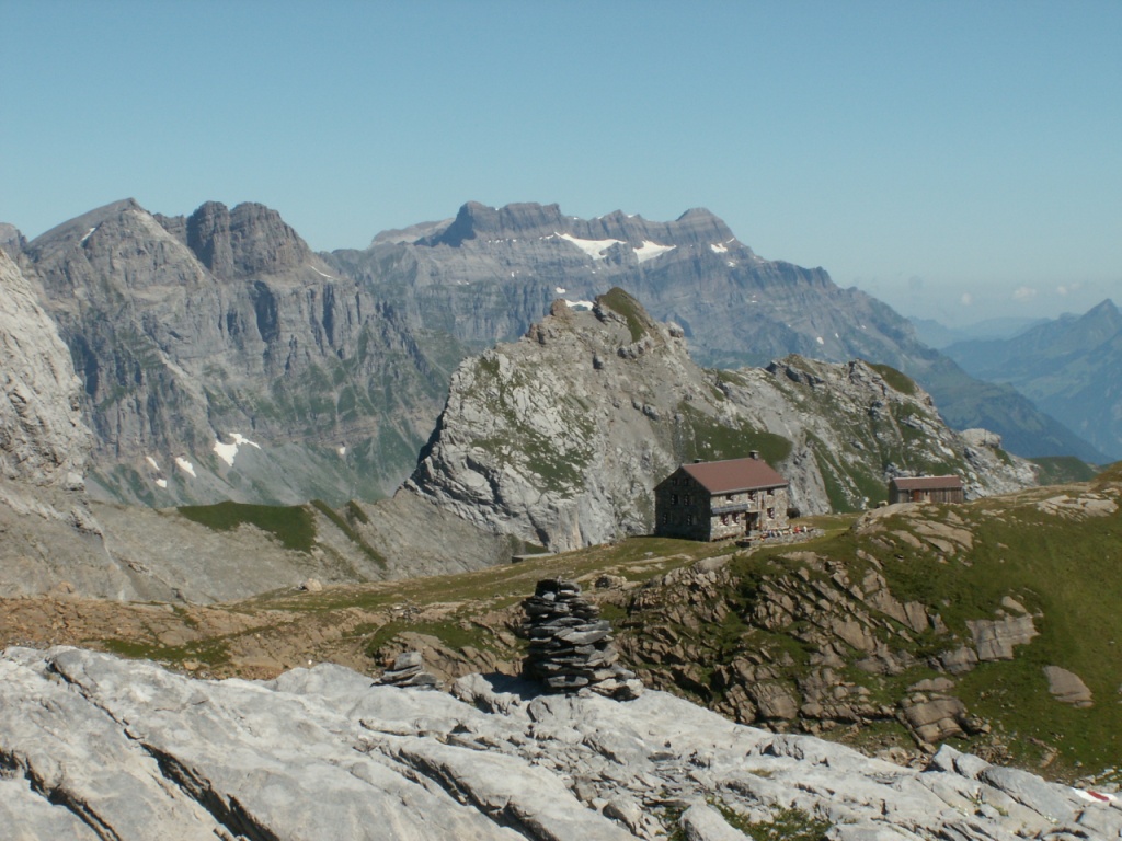 Blick zur Claridenhütte im Hintergrund der Glärnisch