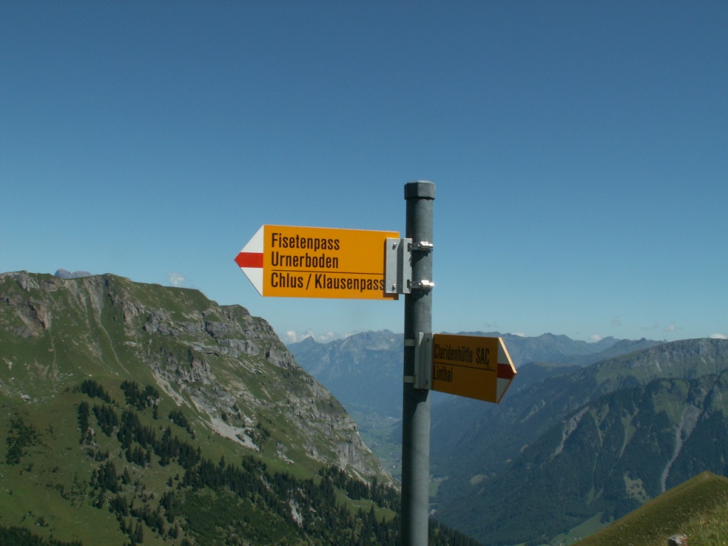 Wegweiser auf dem Fisetenpass 2036 m.ü.M.