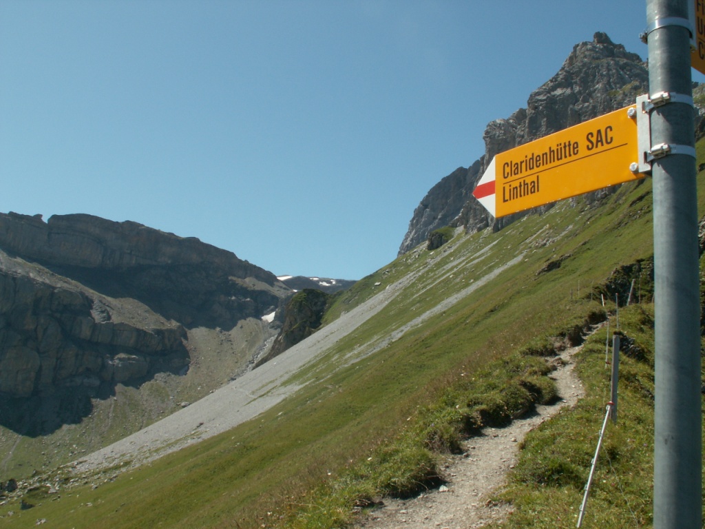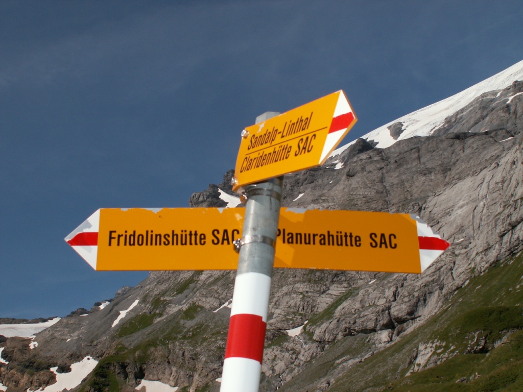 Wegweiser zeigt Richtung Claridenhütte