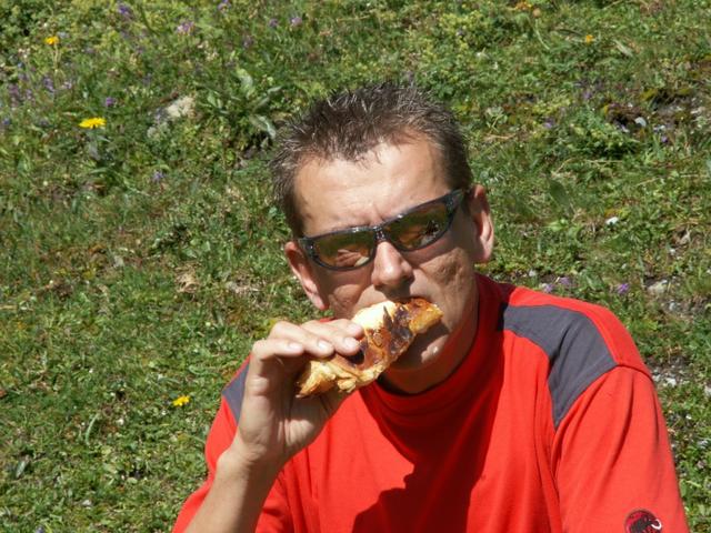 Franco geniesst ein super feiner Mandelgipfel