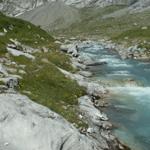 über Schutt und Geröll geht es nun runter und weiter Richtung Claridenhütte