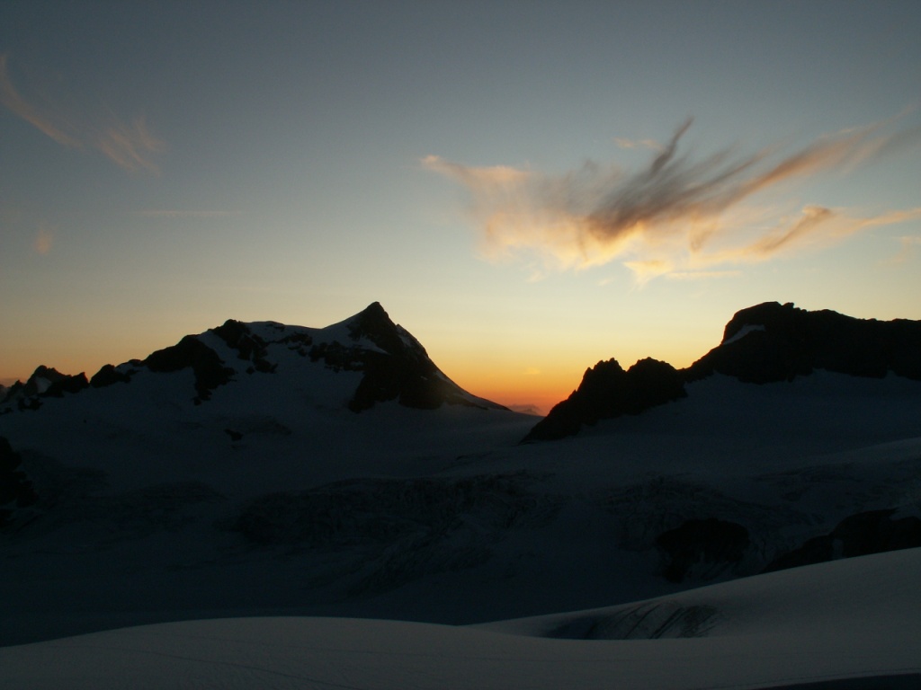 links der kleine Tödi mit dem Sandgletscher. Dort müssen wir rauf